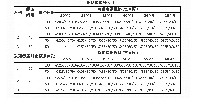 如板寬不足995mm應(yīng)從(鋼格板的扁鋼數(shù)目與其相應(yīng)的總體名義寬度)表中選用最接近的寬度,如1250LB×590mm的板應(yīng)改為1250LB×605mm。