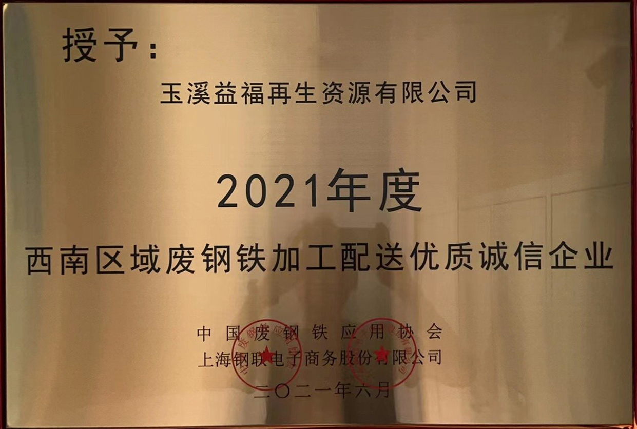 公司始終以開放的姿態(tài)與眾多的客戶攜手并進(jìn),合作共贏。多年來,先后榮獲“全國(guó)優(yōu)質(zhì)廢鋼加工配送企業(yè)”、“西南區(qū)域廢鋼鐵加工配送優(yōu)質(zhì)誠(chéng)信企業(yè)”、“西南區(qū)域優(yōu)質(zhì)合作單位” 等多項(xiàng)殊榮。